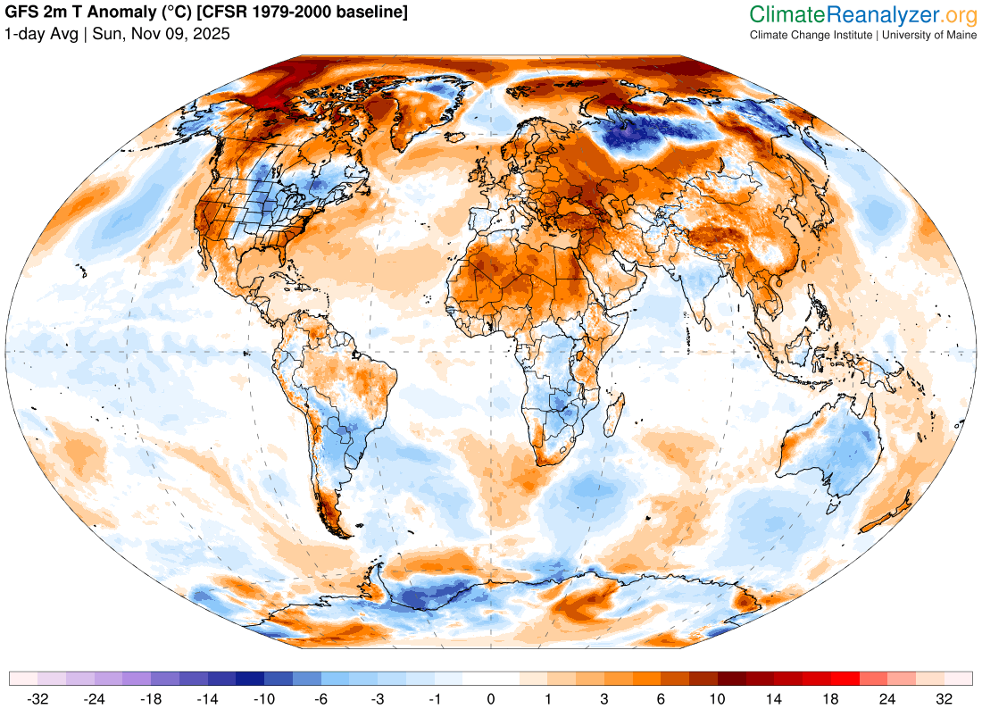 La Siberia vive una situazione di freddo molto importante: addirittura abbiamo temperature che vanno oltre i 10°C, se non anche 15°C, sotto la norma. Quelle regioni vivono un clima molto continentale, quindi ampiezze così notevoli in ambito di anomalie possono essere possibili sia di caldo che di freddo.