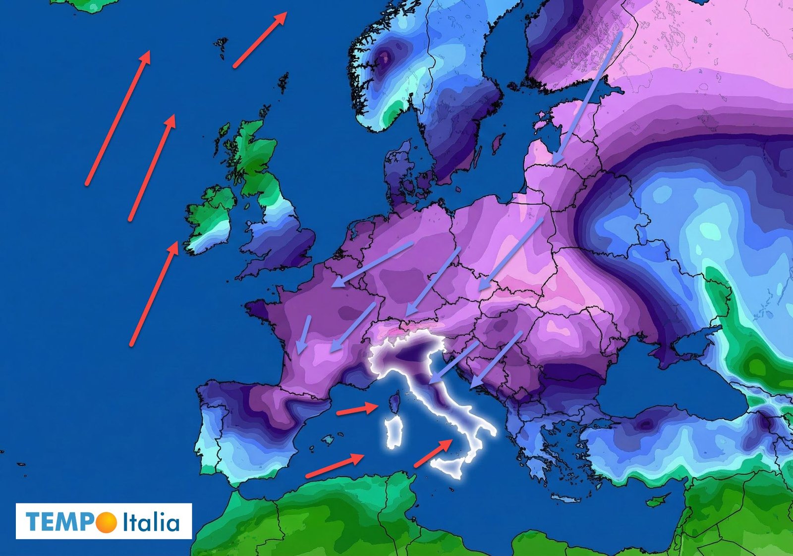 Ondata di freddo in Europa, simulazione.