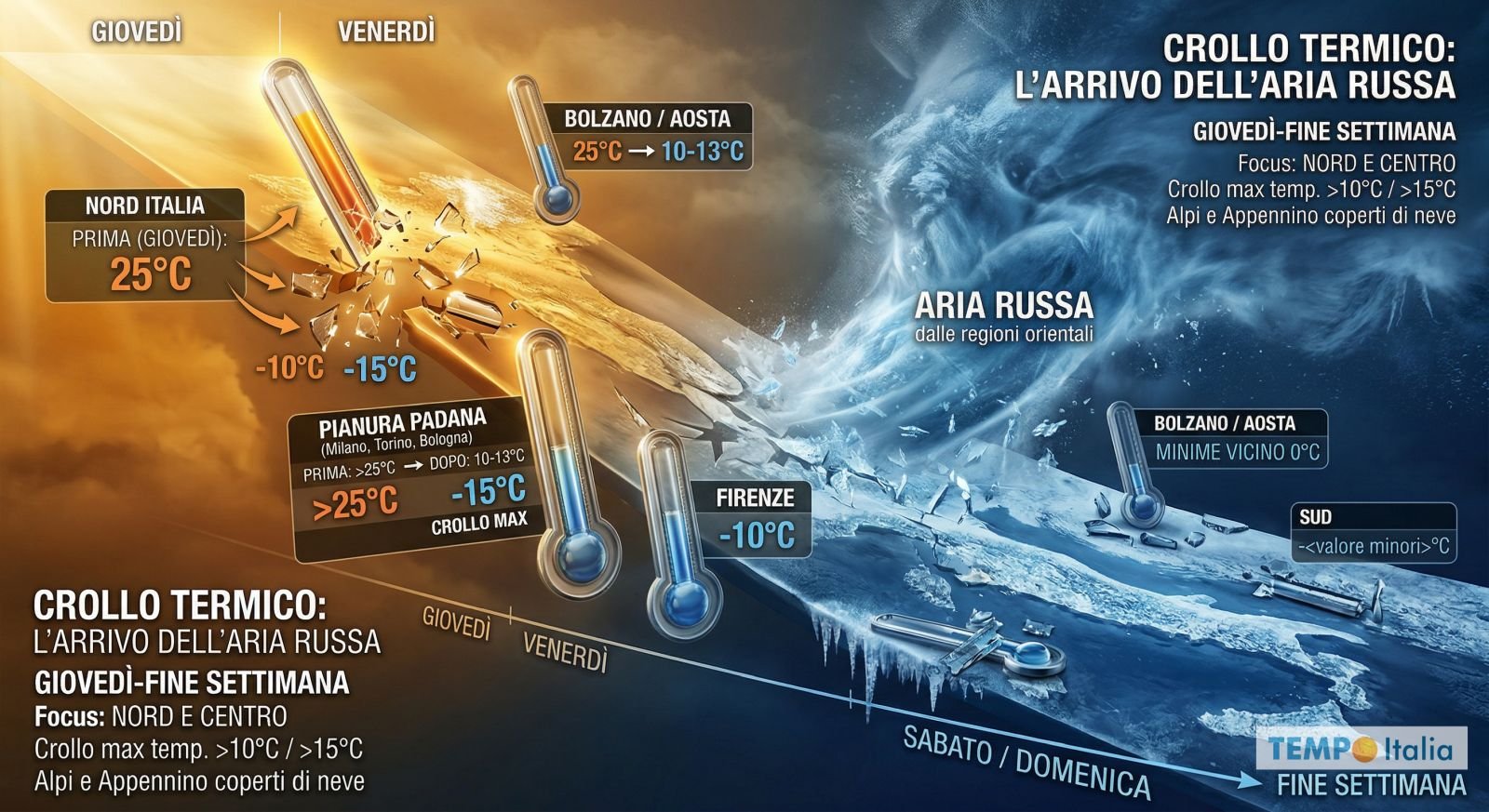 Da 28 gradi a 0 gradi in pochi giorni: il tracollo termico che l’Italia non si aspetta