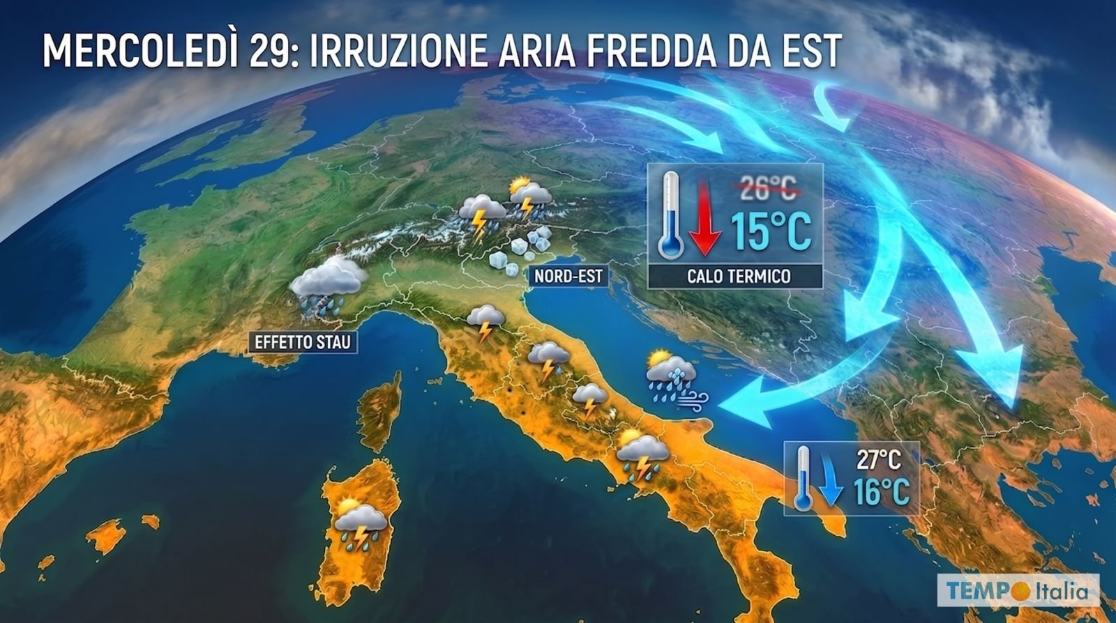 Mercoledì 29: entra l’aria fredda da Est